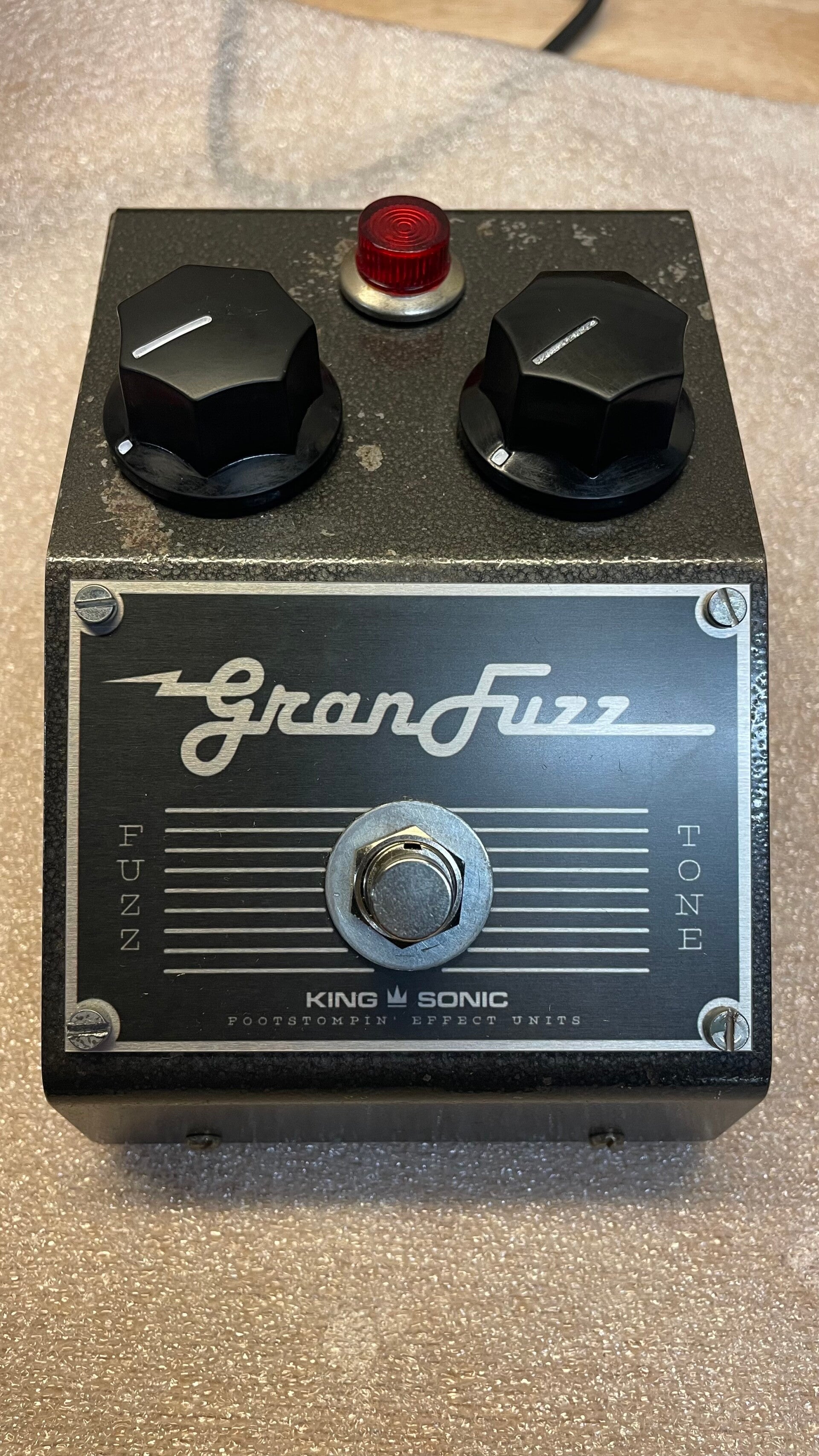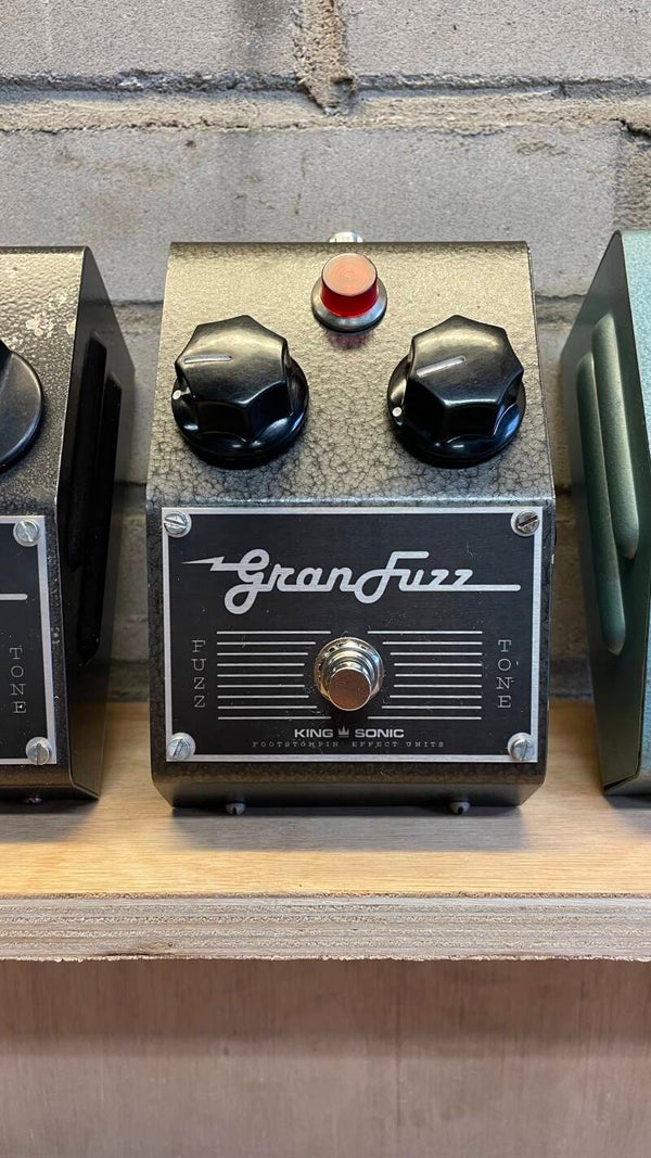 The Gran Fuzz is a hand-built analog fuzz pedal based on a 1,5V 1960s circuit, modified for use with modern 9V power supplies. It produces a thick, mid-focused fuzz tone that reacts strongly to playing dynamics and volume changes on your instrument. The Gran Fuzz features a modified filter and an added gain stage. This gives it enormous headroom and allows it to also be used as a booster. The pedal works well with both guitar and bass.