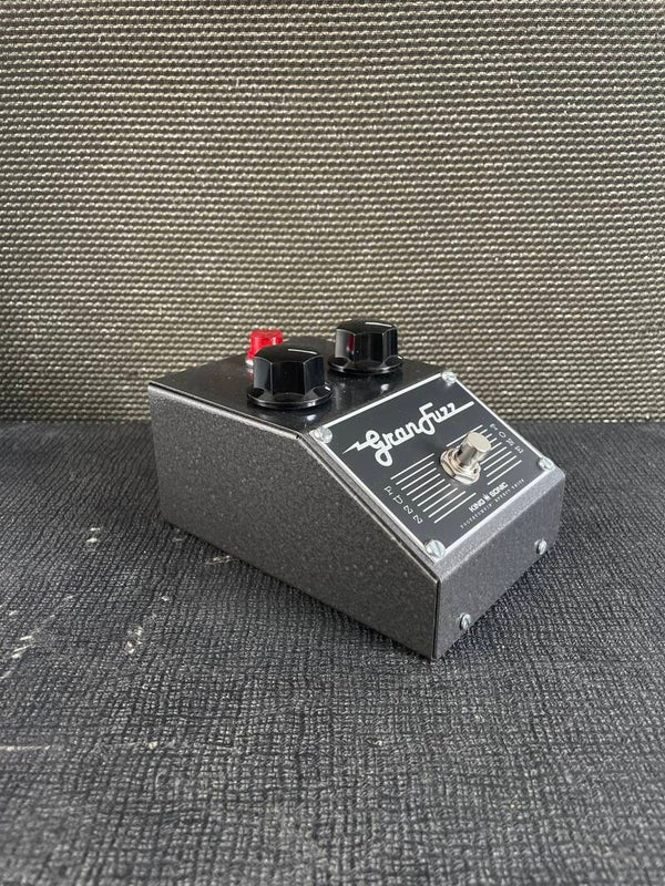 The Gran Fuzz is a hand-built analog fuzz pedal based on a 1,5V 1960s circuit, modified for use with modern 9V power supplies. It produces a thick, mid-focused fuzz tone that reacts strongly to playing dynamics and volume changes on your instrument. The Gran Fuzz features a modified filter and an added gain stage. This gives it enormous headroom and allows it to also be used as a booster. The pedal works well with both guitar and bass.