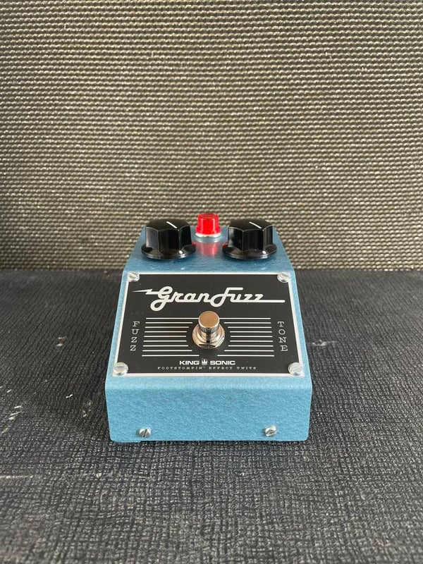 The Gran Fuzz is a hand-built analog fuzz pedal based on a 1,5V 1960s circuit, modified for use with modern 9V power supplies. It produces a thick, mid-focused fuzz tone that reacts strongly to playing dynamics and volume changes on your instrument. The Gran Fuzz features a modified filter and an added gain stage. This gives it enormous headroom and allows it to also be used as a booster. The pedal works well with both guitar and bass.